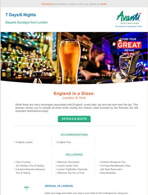 Yorkshire is easily accessible by train. York is only one hour and 50 minutes by train from London and two and a half hours from Edinburgh. Train services are also frequent to York from Manchester city center, one hour and 20 minutes, and Manchester Airport, at one hour and 45 minutes. The BritRail Pass is the most cost effective way to explore Britain by train and enables your client to use any train at any time within the chosen time period.